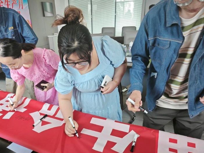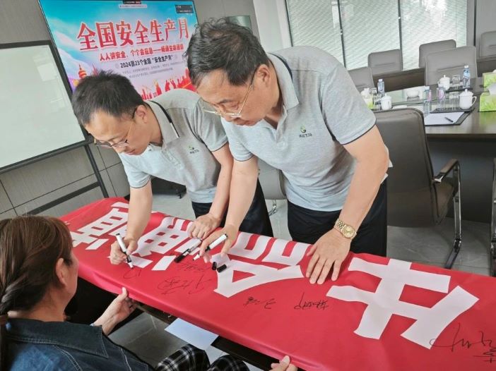 當(dāng)每一位員工在寫著“人人講安全、個(gè)個(gè)會(huì)應(yīng)急——暢通生命通道”的橫幅上簽下自己名字的那一刻,就已經(jīng)許下了安全的承諾。那不僅僅是一個(gè)簽名,更是一份責(zé)任,是對(duì)自己、對(duì)家庭、對(duì)企業(yè)責(zé)任。這一個(gè)承諾,關(guān)系著自己的生命和健康,關(guān)系到家庭和諧幸福,關(guān)系到企業(yè)未來發(fā)展的安全之基。只有在工作和生活中嚴(yán)格遵守安全規(guī)定,采取正確的行動(dòng)來避免危險(xiǎn),保障自己不受傷害,才能守護(hù)自己、家庭和企業(yè)的美好未來。