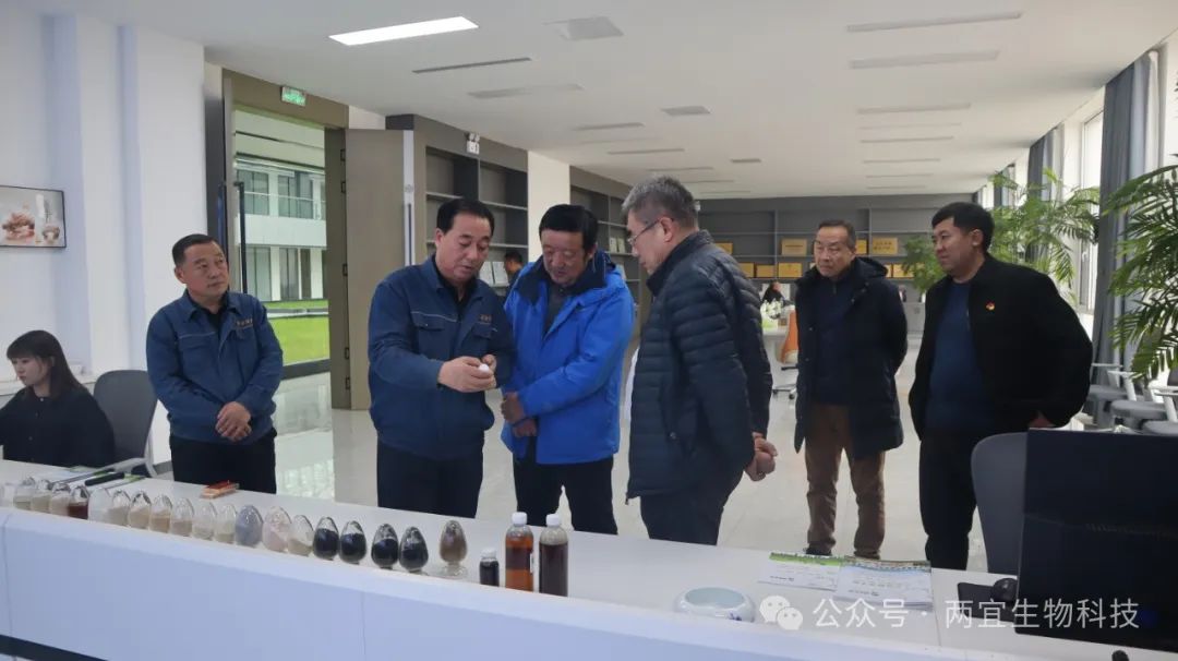 1月18日,內蒙古自治區(qū)農(nóng)牧廳二級巡視員劉永明一行三人、鄂爾多斯市科技特派員工作站站長李蘭、達旗農(nóng)牧局副局長王金如、推廣中心副主任呂志軍一行蒞臨兩宜生物集團考察。